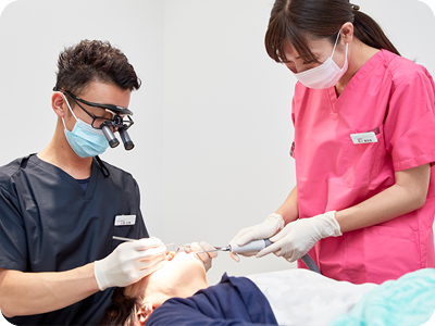 また、マウスピースを使った矯正治療「インビザライン」国内症例数最上位ランクであるリボン歯科・矯正歯科グループと提携し、歯科矯正では27,000症例以上、インプラントでは3,000症例以上のノウハウを共有しております。透明なマウスピースを使った矯正治療「インビザライン」では、他医院に先駆けて導入し日本で初めて年間症例数3,000件を超え、国内約7万件の歯科医院で最上位ランクとなりました※。トップの称号「パープル ダイヤモンド」を獲得しました総合歯科でありながら、矯正治療などの専門的な分野で国内最上位ランクを獲得したことは、患者さまに大きなメリットがあります。矯正治療や自費治療の場合、専門医院を選ばれる患者さまが多くいらっしゃいます。例えば、矯正や自費専門医院では、矯正治療などの途中で虫歯になった場合、同じ医院で虫歯の治療をすることは出来ず、虫歯治療だけ他医院に通わなければなりません。これは責任も曖昧になり、トラブルに繋がったと耳にすることがあります。これが、総合歯科医院と専門歯科医院の大きな違いになります。