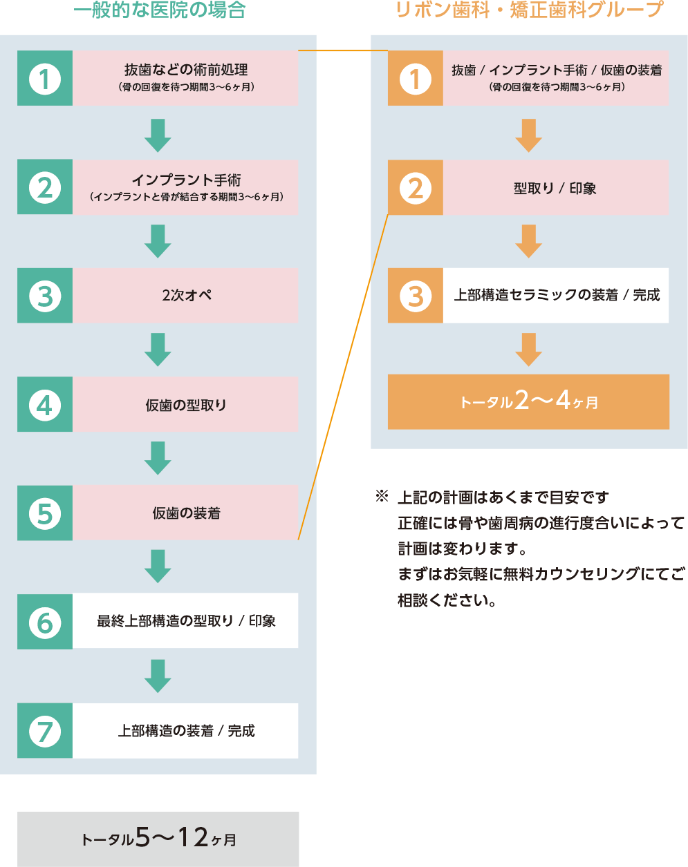 しかもその間、患者さまにとっては歯のない状態が続くので、見た目にも食事などの面でも生活に支障をきたすことも多いことと思います。