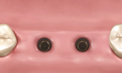 骨の量が足りない場合は骨造成といってあごの骨を増やす治療を行いますが、そうした術前治療に3ヶ月から半年ほど要するので、最終的な上部構造(人工歯)が装着されるまでには長い期間を要します。